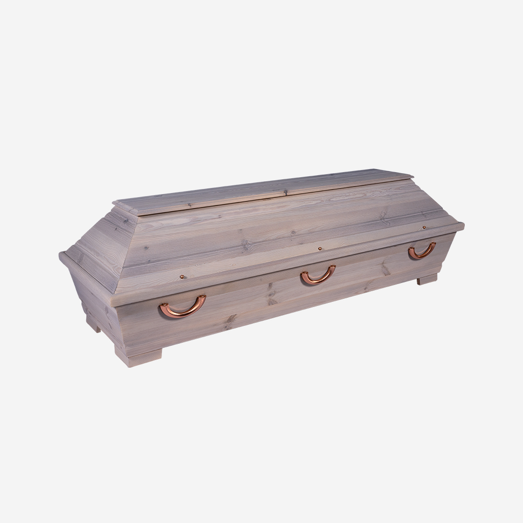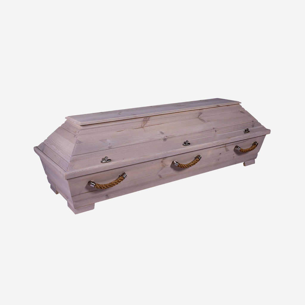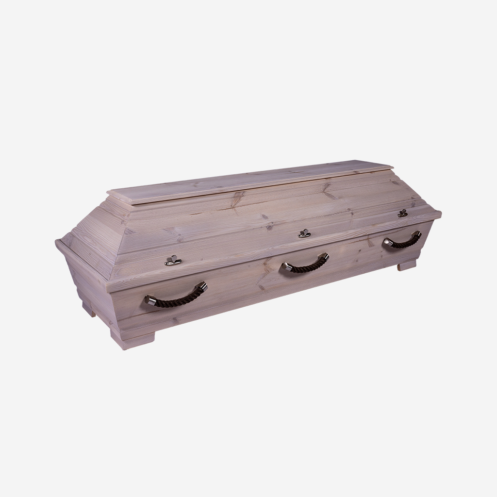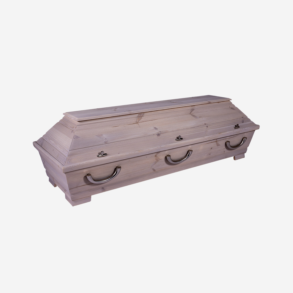 Astiger Kiefernsarg mit Alpiner Positivbeize in einem hellem rustikal Farbton